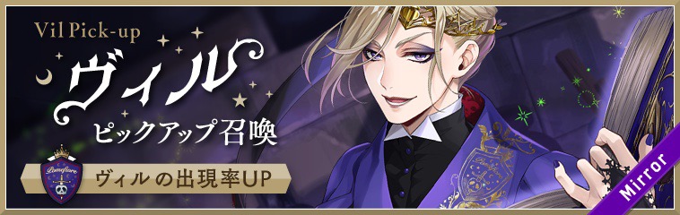 「ヴィル ピックアップ召喚」では、ピックアップ対象のキャラクターの提供割合が、同じレアリティの他キャラクターよりもアップします☆