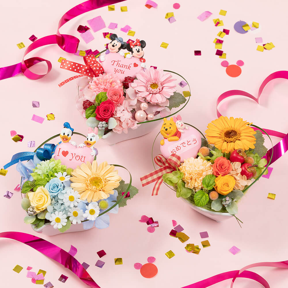 ディズニーキャラクターデザインのフラワーギフトも多数ラインナップされています。