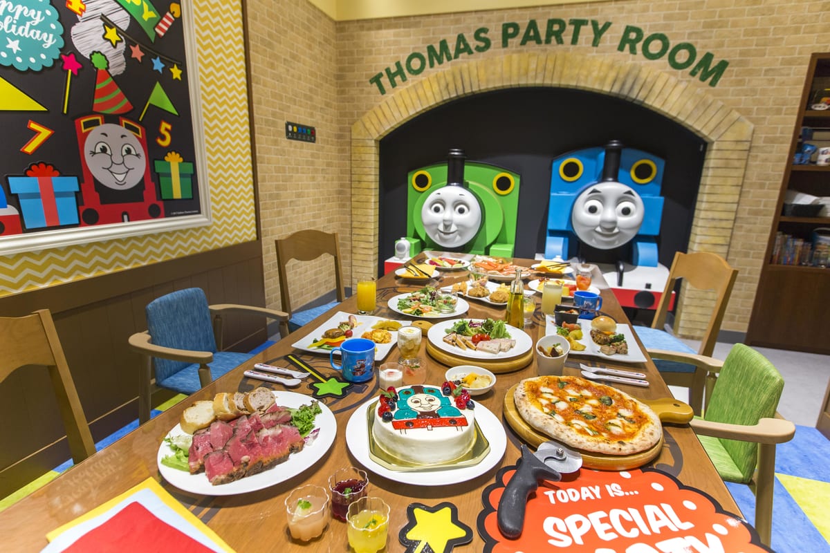 「ハイランドリゾート ホテル&スパ」のブッフェレストラン「フジヤマテラス」内には、「トーマス」と「パーシー」がお出迎えしてくれる特別個室「トーマスパーティールーム」も用意されています。