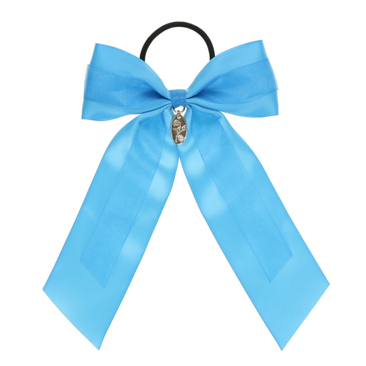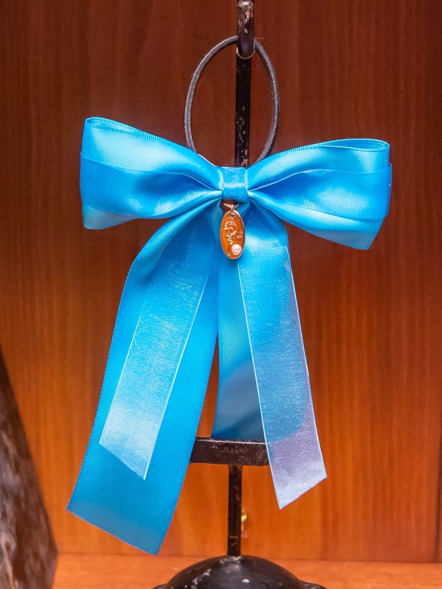 ブルーのリボンが付いたヘアゴム。