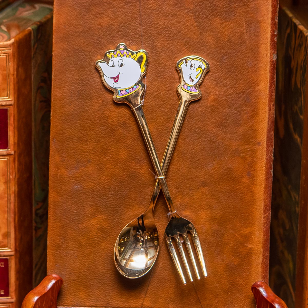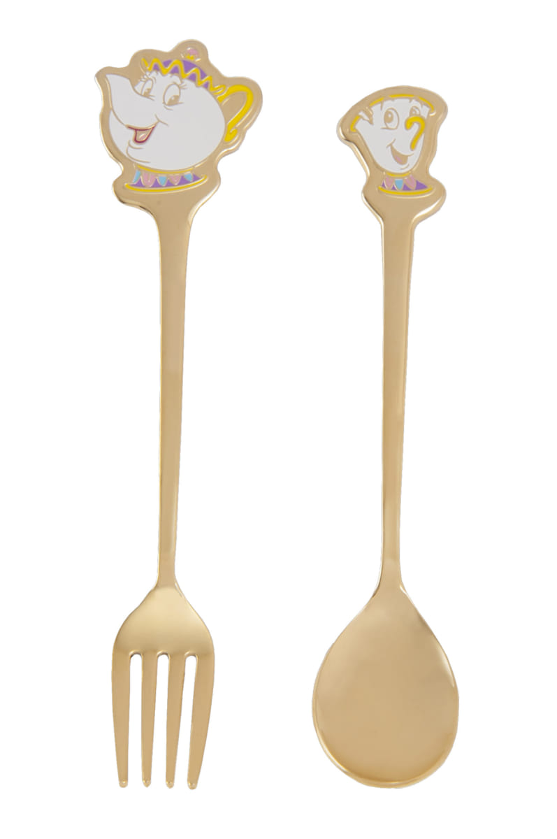 「ポット夫人」と「チップ」デザインのカトラリーセット。