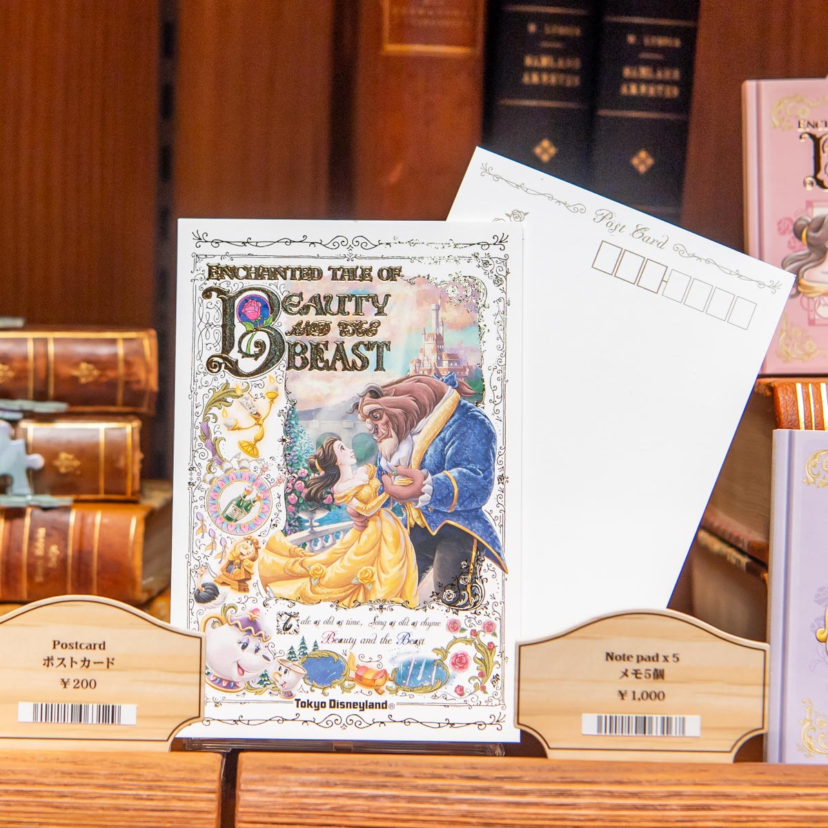 「美女と野獣“魔法のものがたり”」のロゴ部分が箔押しになった豪華なポストカード。