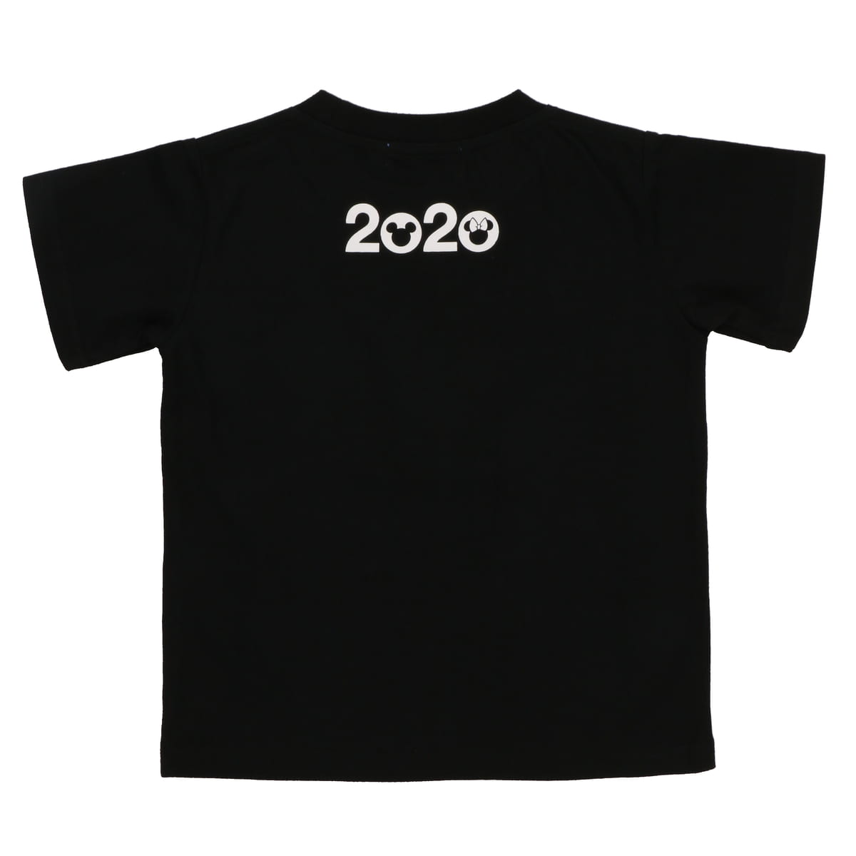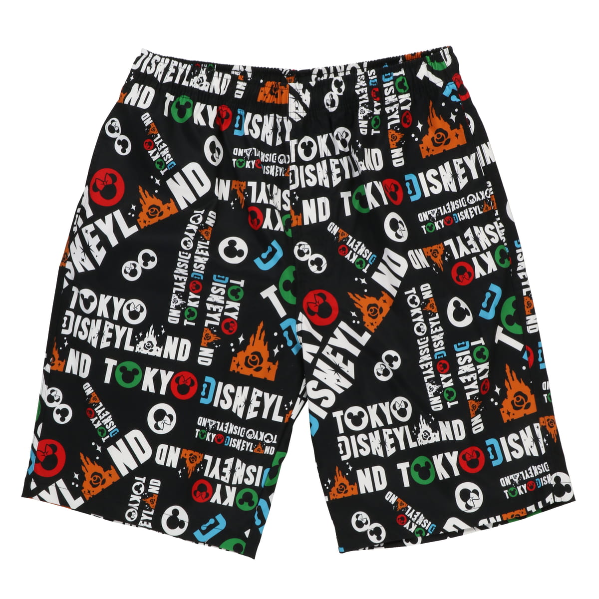 TOKYO DISEYLANDの文字に新エリアに登場するアトラクションなどのロゴがデザインされた黒色のTシャツ。