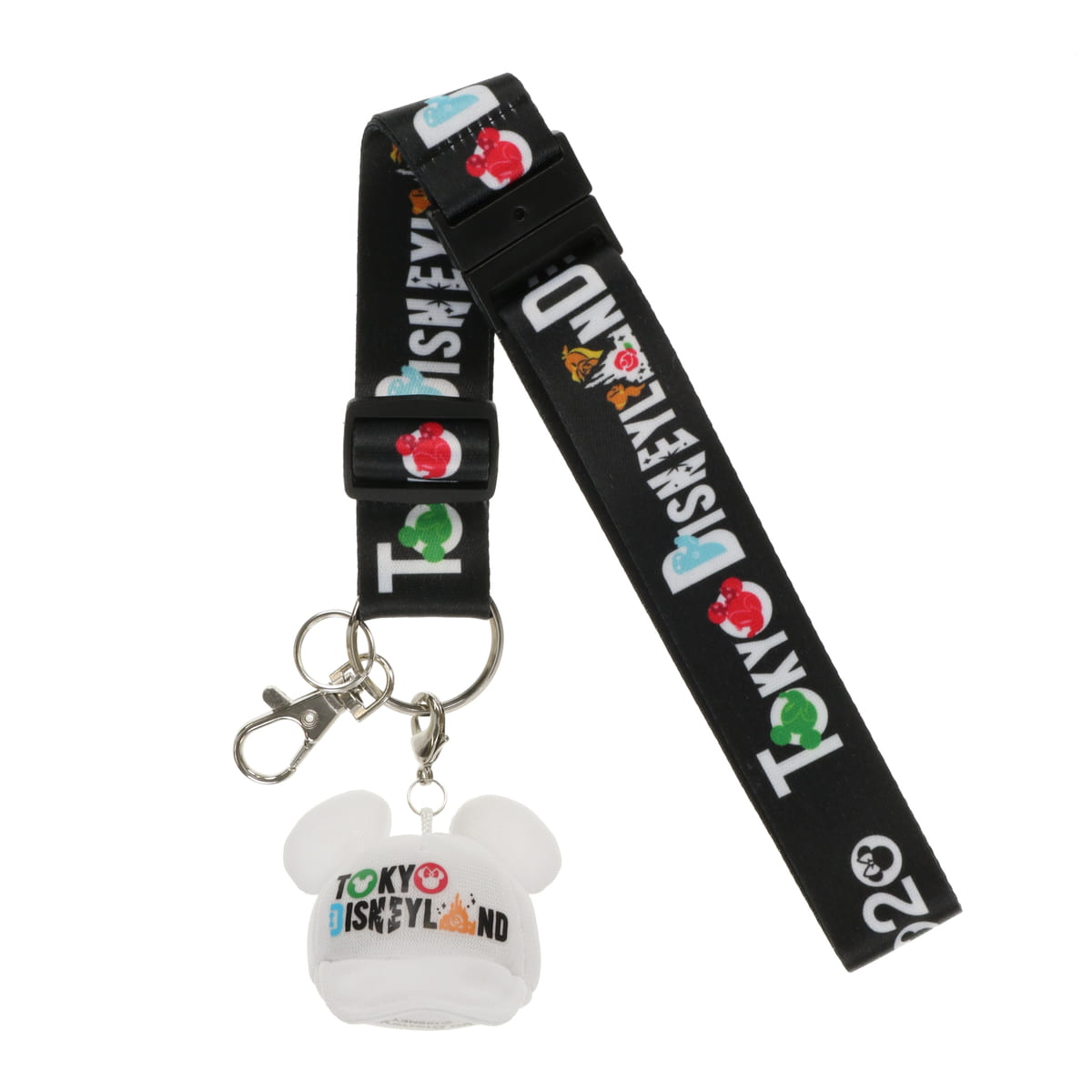 ミッキーシェイプのマスコットが付いたネックストラップ。