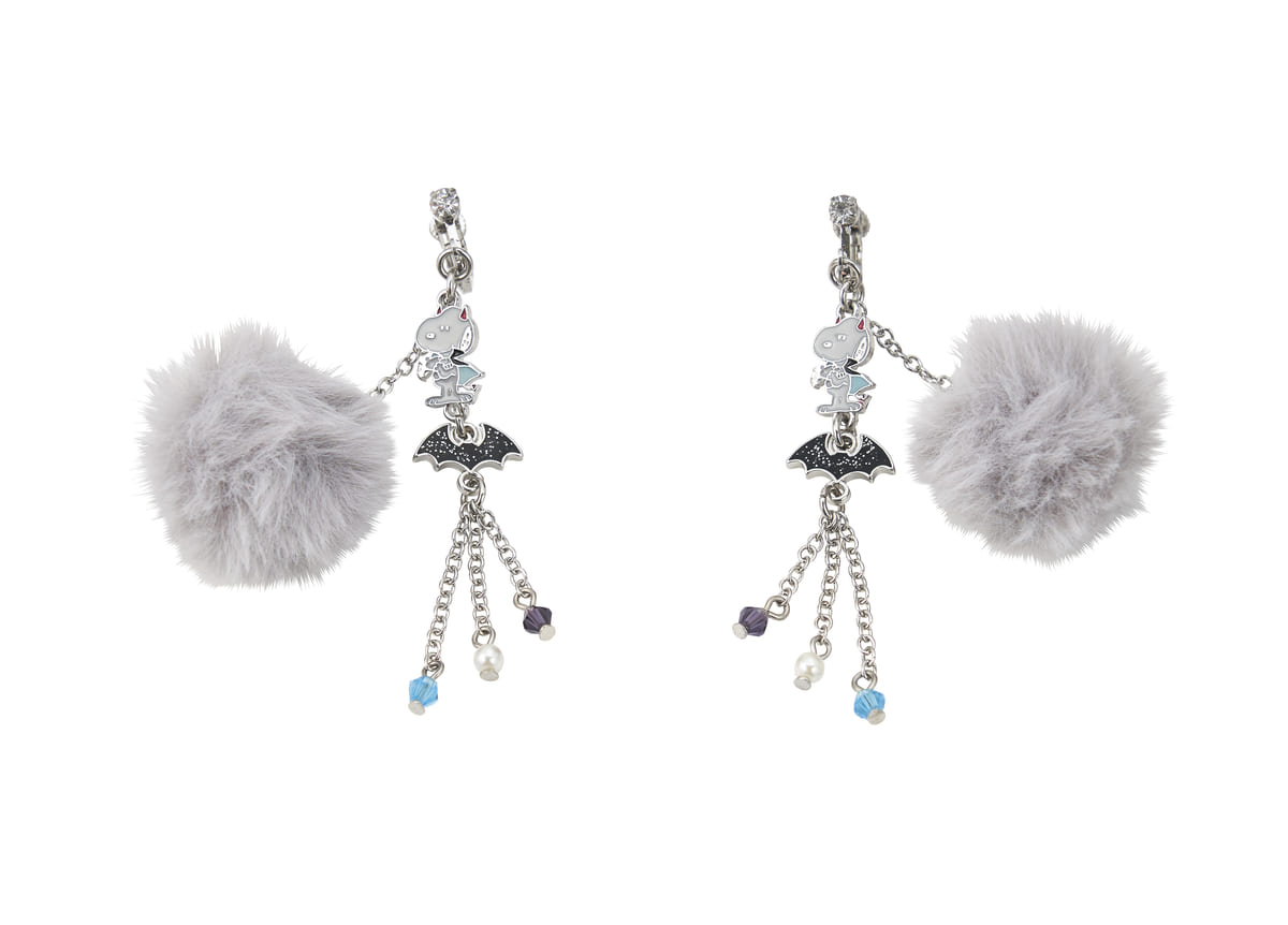 ふわふわのファーに「スヌーピー」をちょこんとのせたイヤリング。