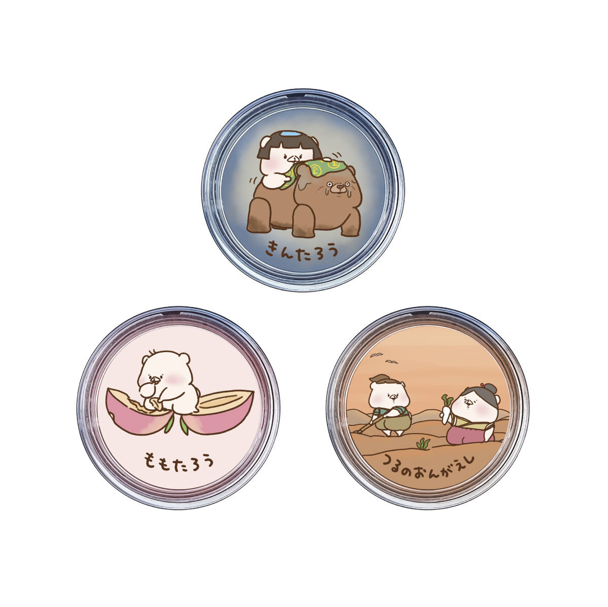 ラインナップ:(左から)「きんたろう」「ももたろう」「つるのおんがえし」