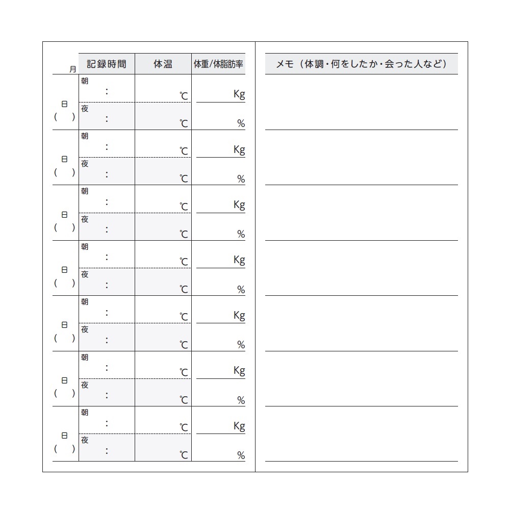 「体調管理メモ」は、毎日の検温や体調を記録しておくことができるメモ帳です。