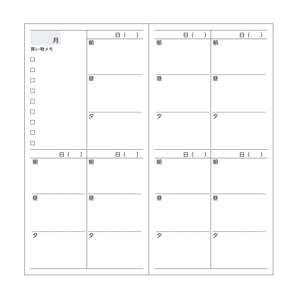 「献立計画メモ」は、日々の献立の計画を立てることで買い物時間の短縮に役立てられるメモ帳。