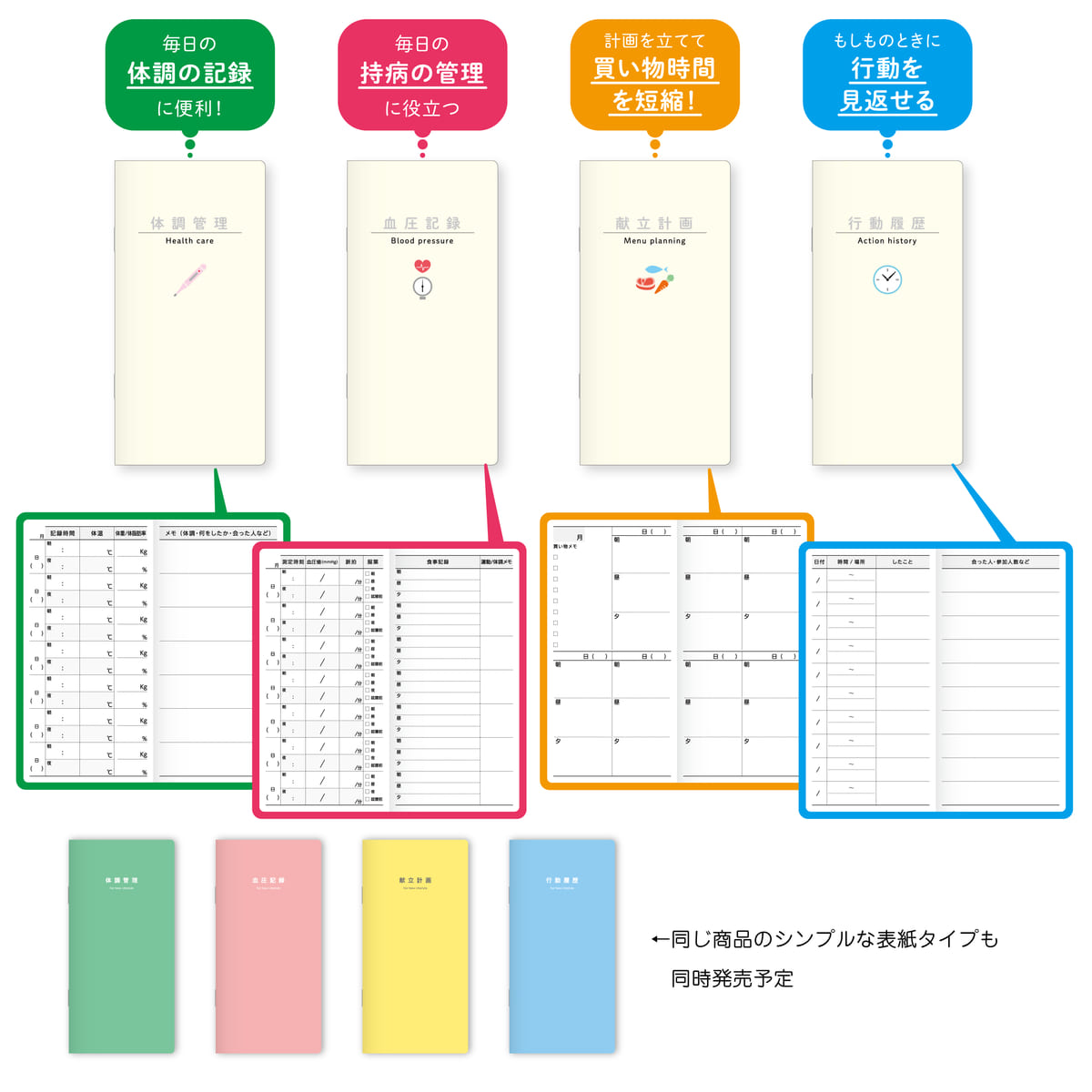表紙は、体温計がデザインされたイラストデザインと、グリーンを基調としたシンプルデザインの2種がラインナップされています。