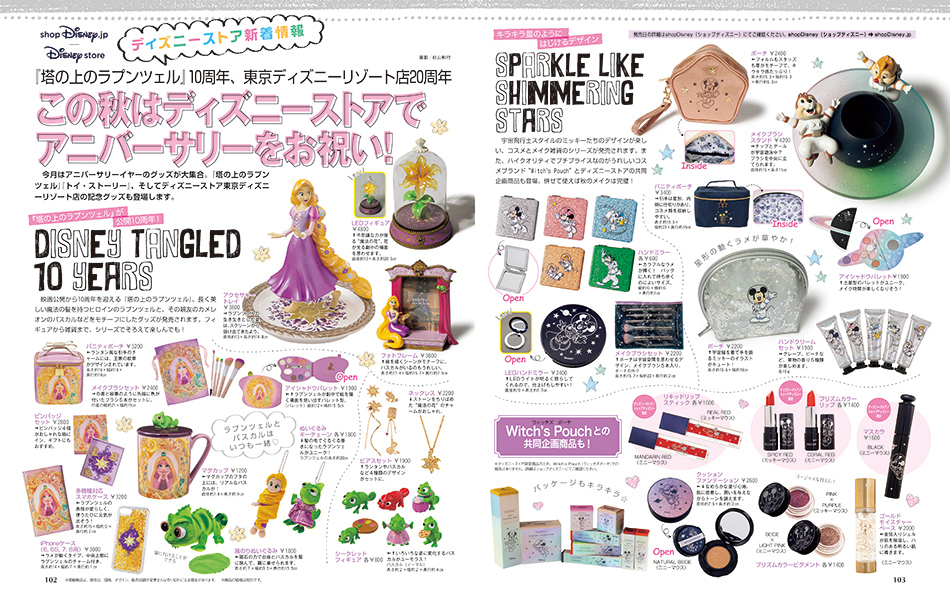ディズニーストアページでは、『塔の上のラプンツェル』10周年、東京ディズニーリゾート店20周年を記念したグッズなどが紹介されています。