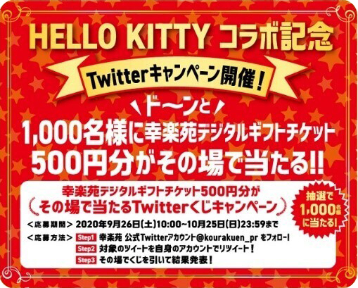 「ハローキティ」とのコラボを記念し、幸楽苑公式アプリにてキャンペーンを開催。