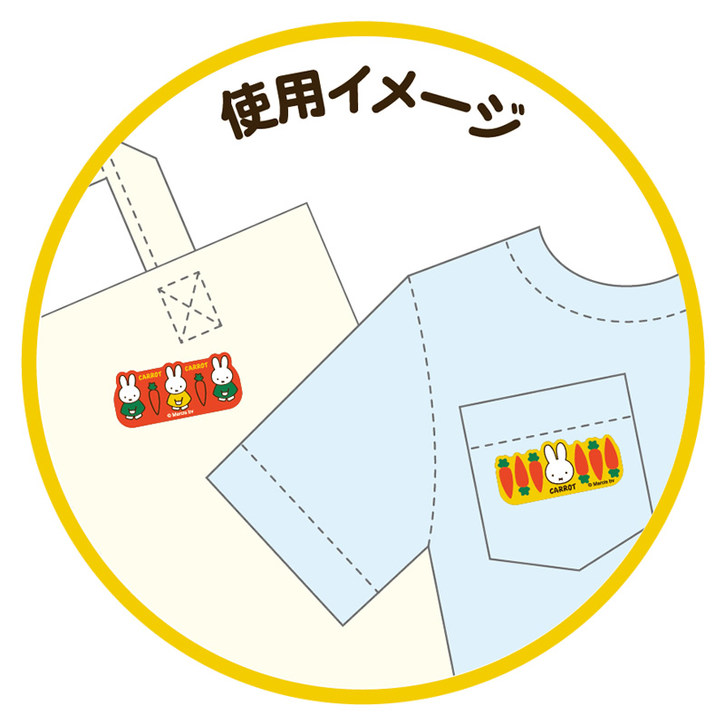 「ミッフィー」とニンジンがデザインされた可愛いバッジ。