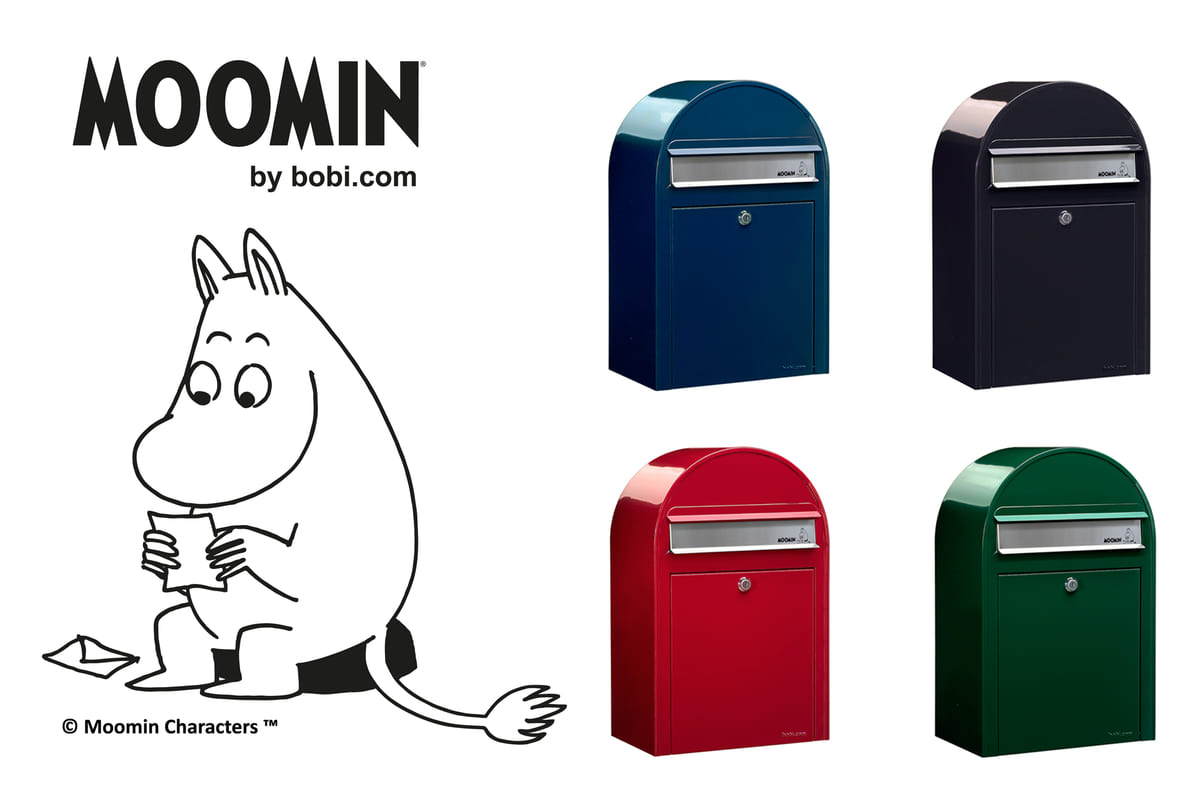 本体色はヨーロピアンカラー4色が採用され、ステンレス製フラップ(投函口)に「Moomin Reads/手紙を読むムーミン」をデザイン。