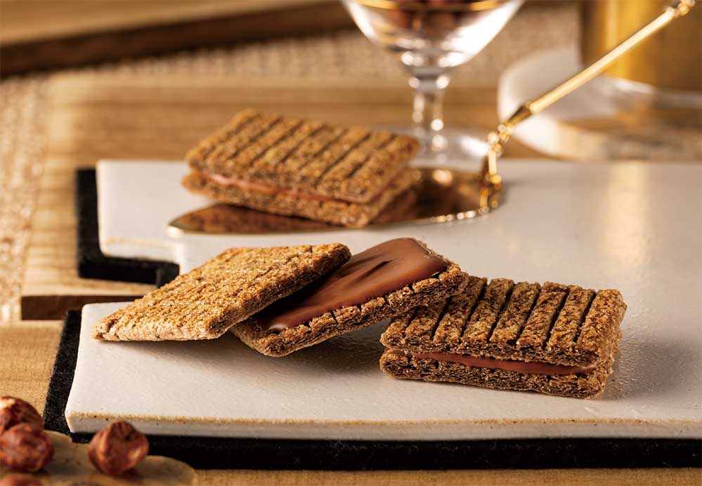 仕上げにこのショコラを、軽やかに焼き上げたココア香る生地でサンドすることで、おとなリッチな味わいがお口いっぱいに広がります。
