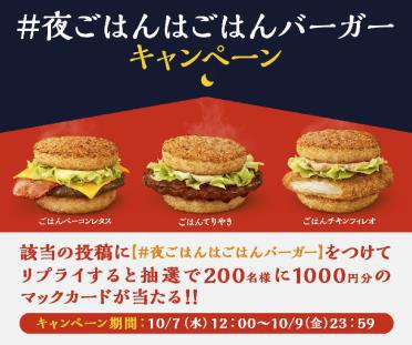 または抽選で合計100名にごはんバーガーオリジナル「マックカード」1,000円分