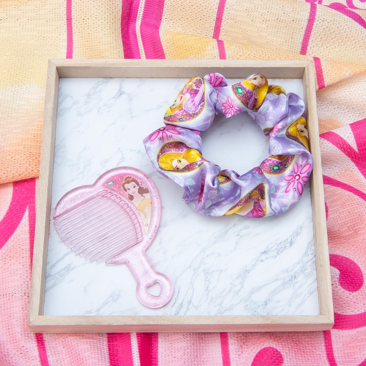 ハートコームには「ベル」が、シュシュには「ラプンツェル」がデザインされています。