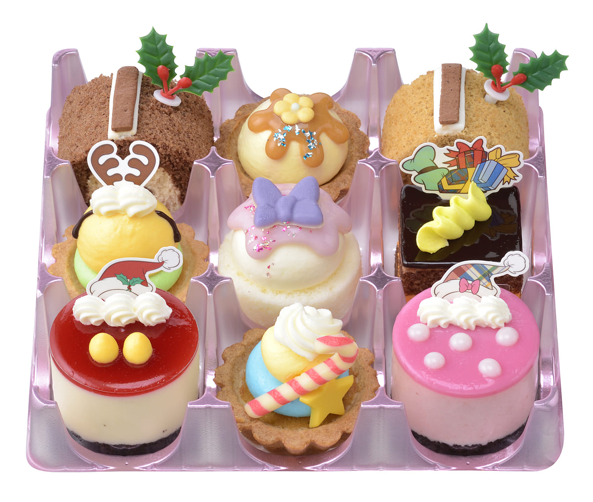 「ミッキー&フレンズ」の仲間たちをプチケーキで表現した「<ディズニー>クリスマス・コレクション(9個入)」