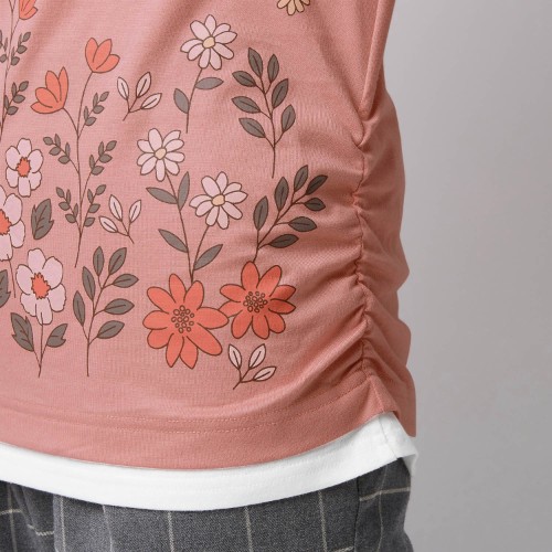 それぞれ裾両脇にはギャザーが入っているのでボディラインをすっきりと見せてくれます。