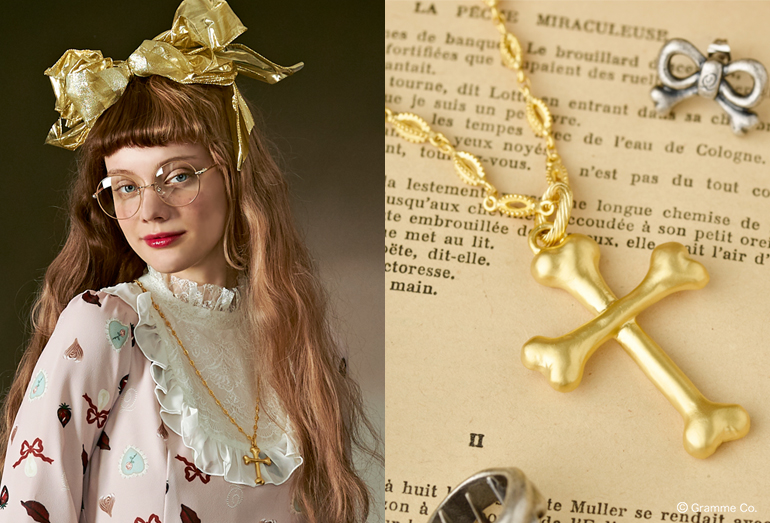 ラインナップは、シスターを象徴するロザリオのネックレスのほか、小ぶりな“リボーン”リングやピアス、