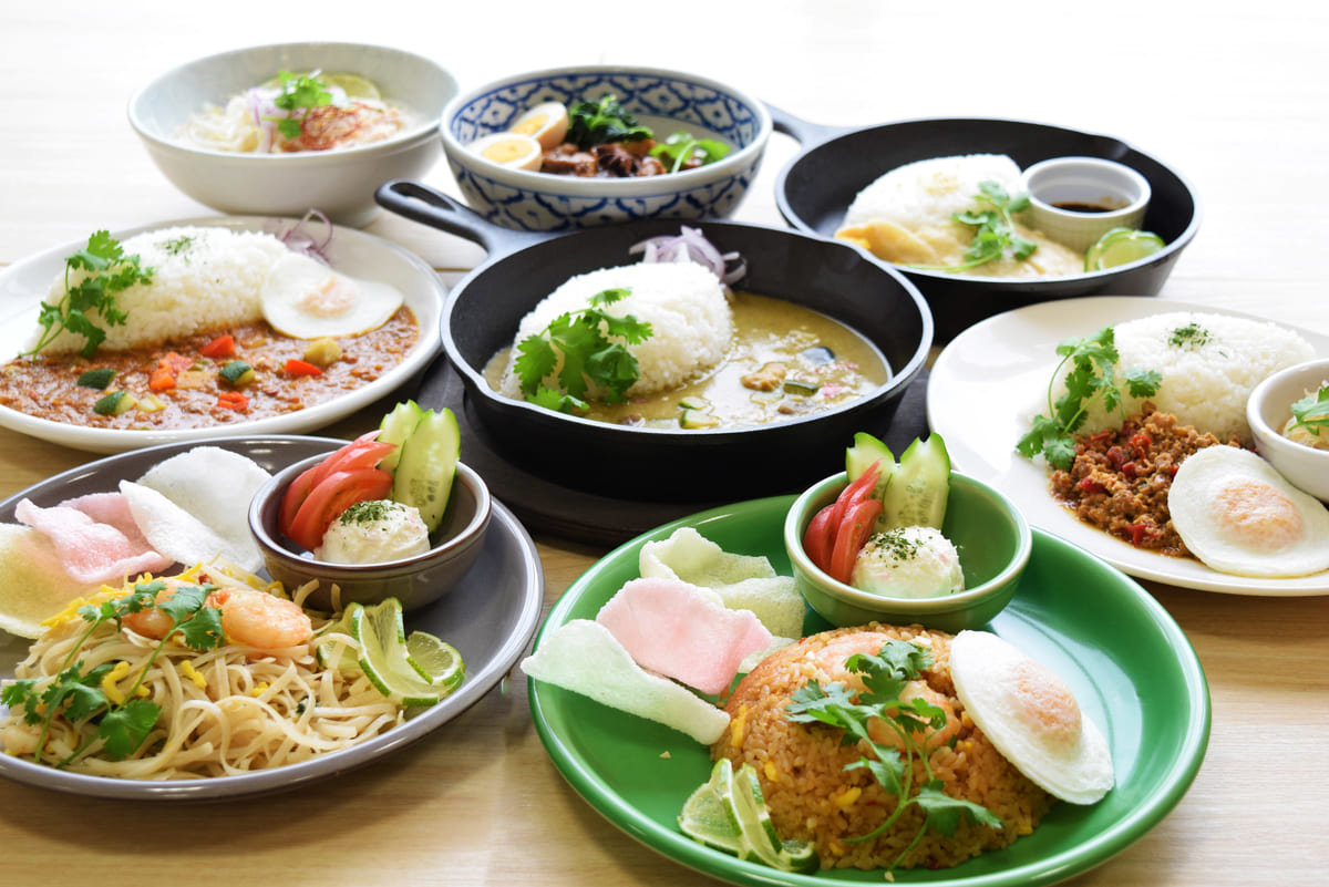 アジアンフード ナシゴレンプレート 1,200円、パッタイプレート 1,200円 など