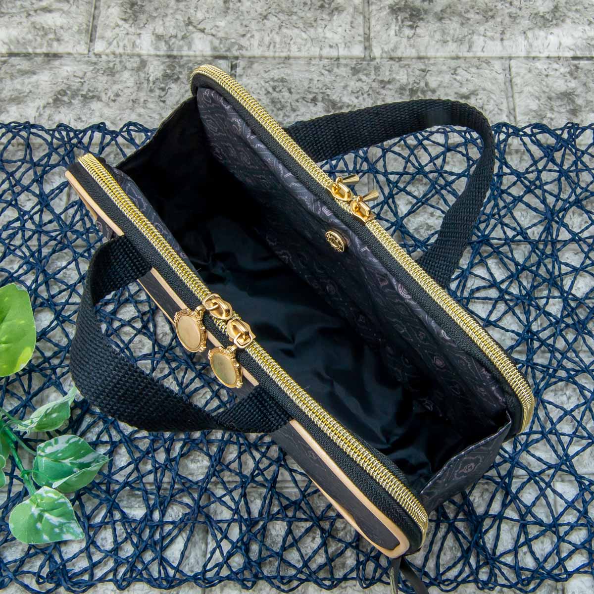 黒を基調とした生地にゴールドのパイピングがおしゃれ☆