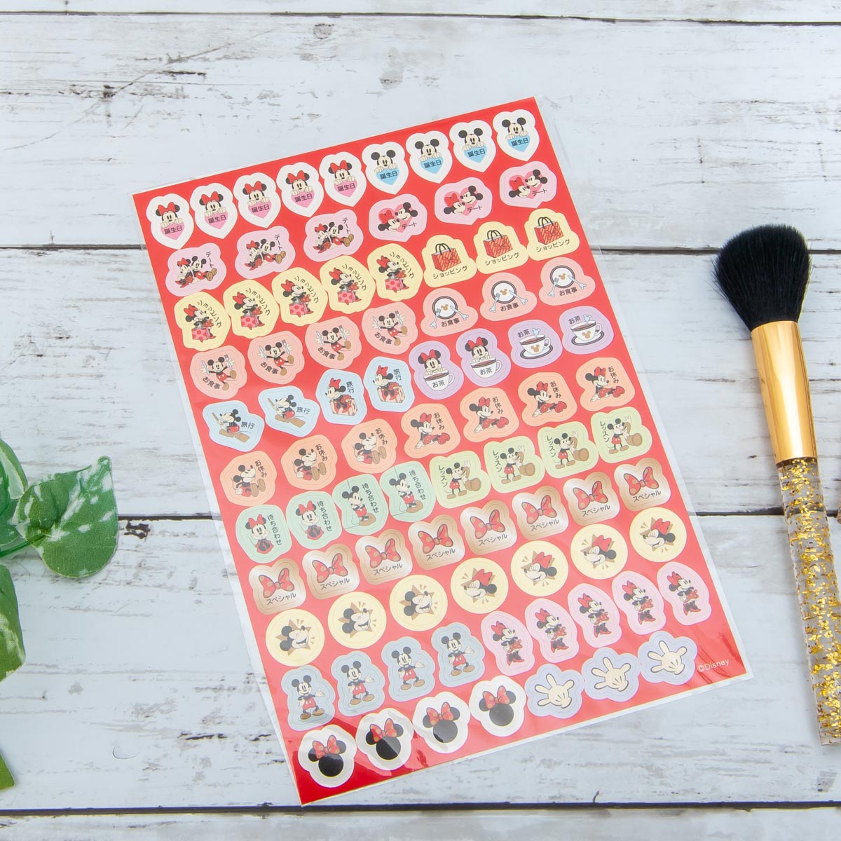 「ミッキーマウス」と「ミニーマウス」のスケジュールシール付き。