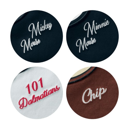 それぞれお顔の下にはロゴの刺繍があしらわれています。