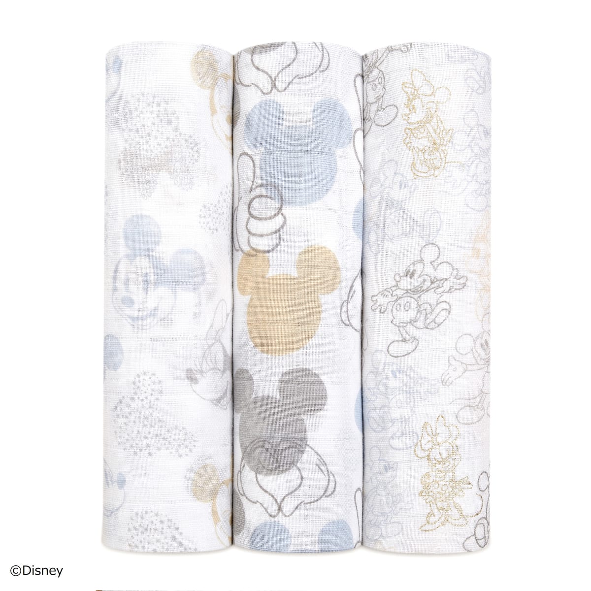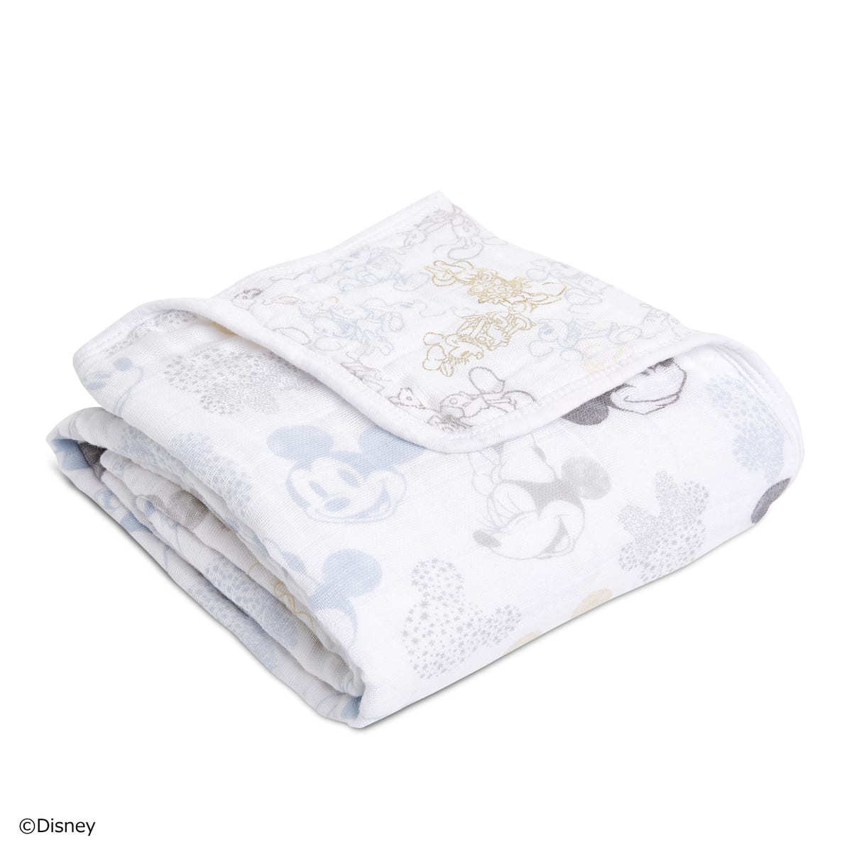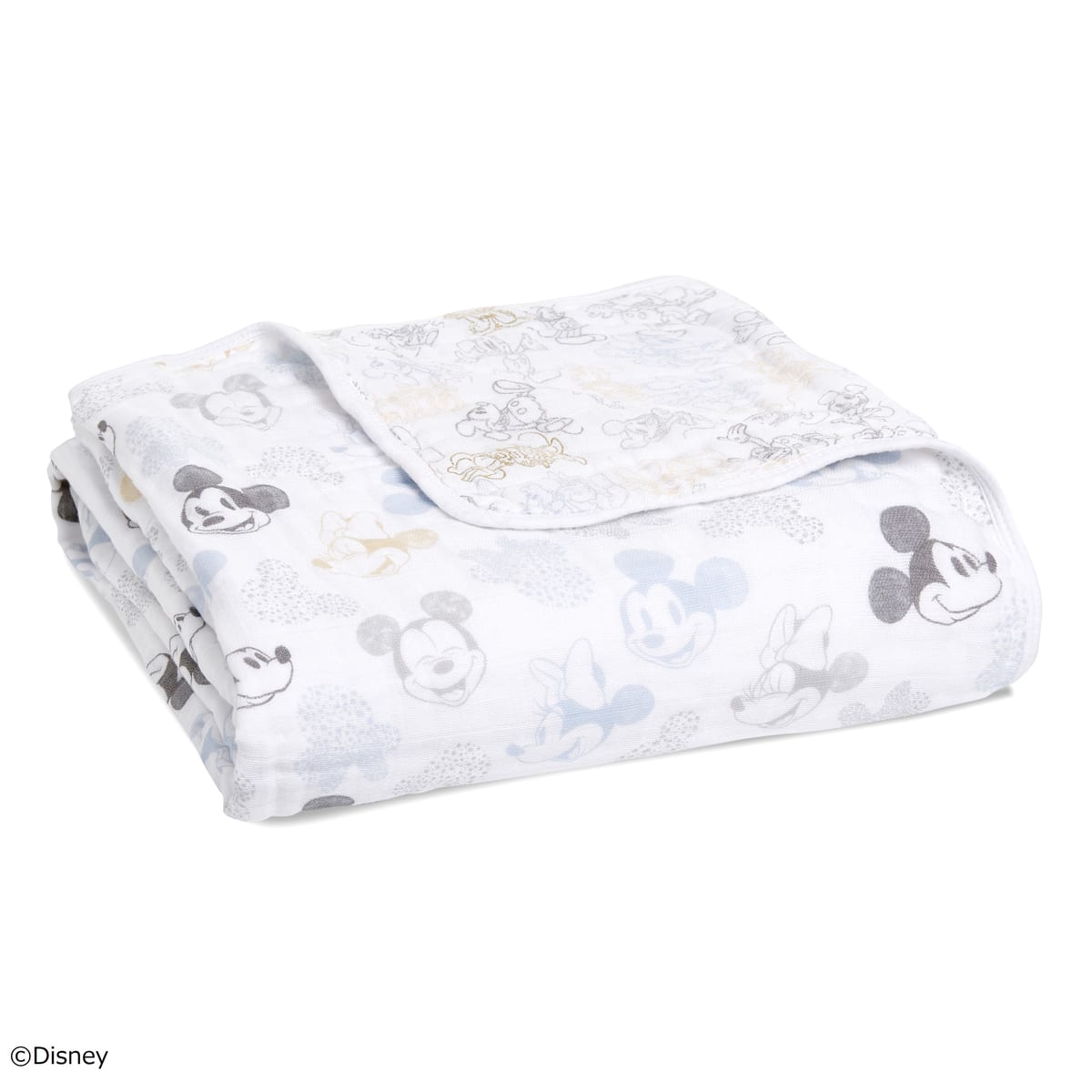 「ミッキーマウス」と「ミニーマウス」が総柄でプリントされた「おくるみ/スワドル」