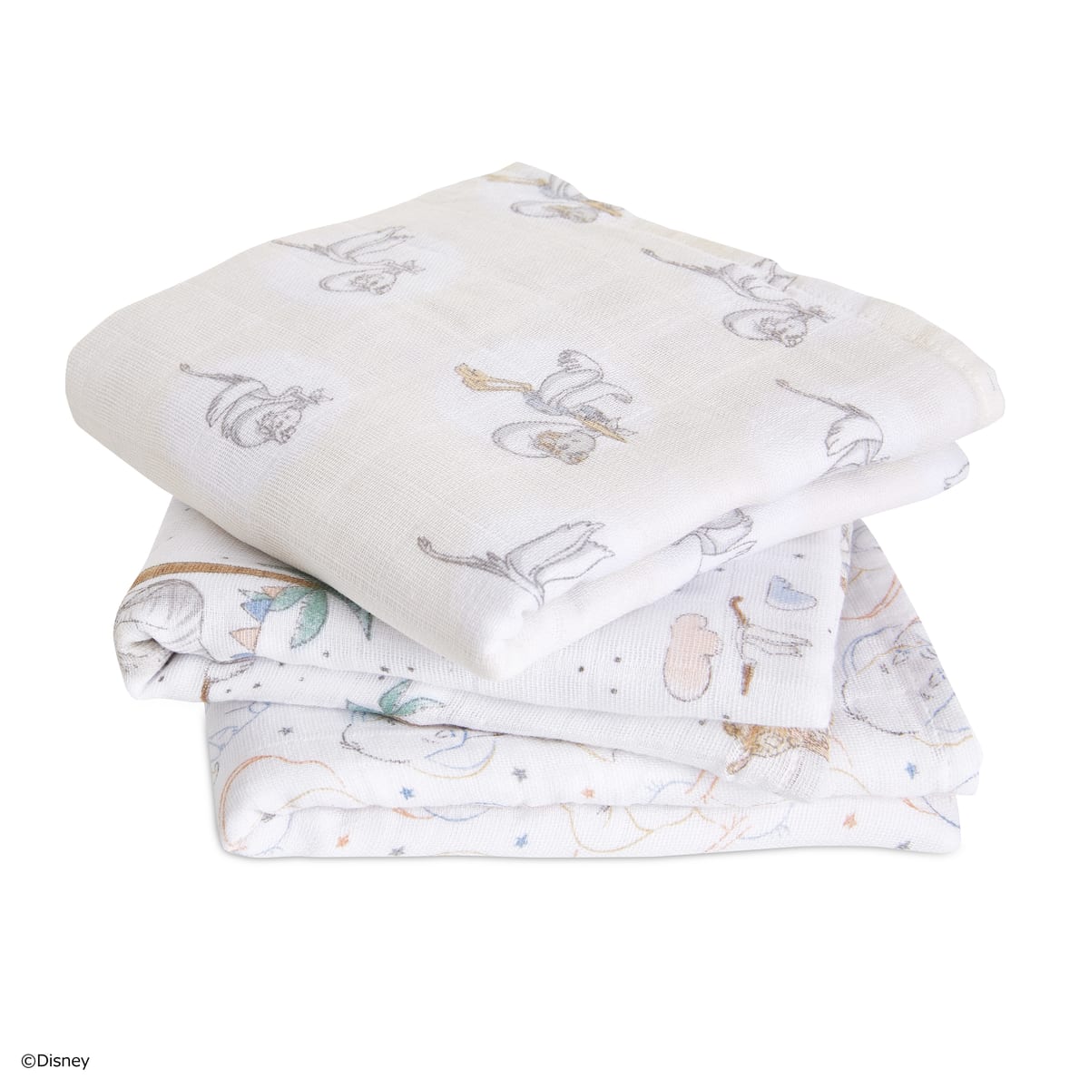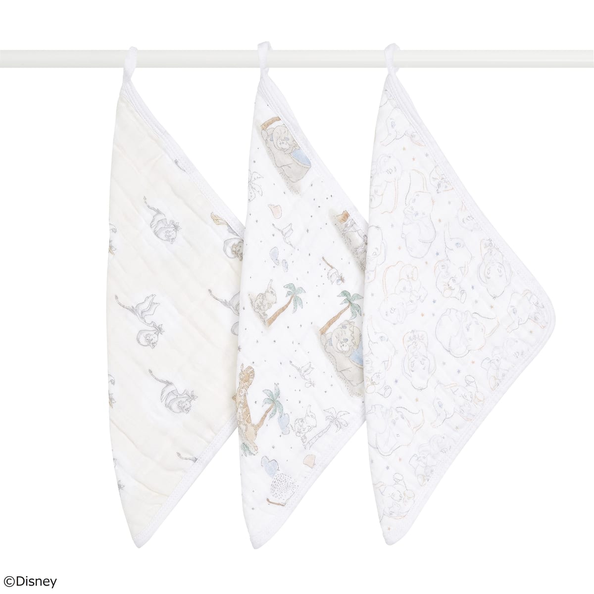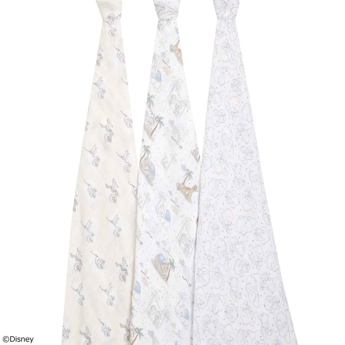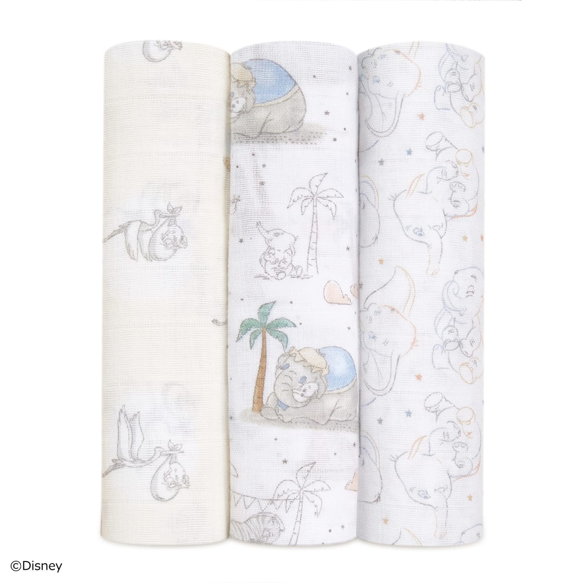 ディズニー映画『ダンボ』の世界観が愛らしいタッチで表現された「Swaddles おくるみ/スワドル」3枚セット。
