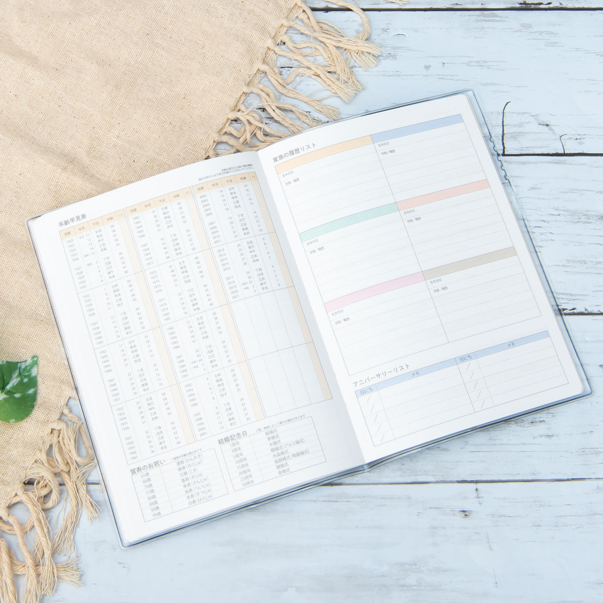 年齢早見表、家族の履歴リスト、アニバーサリーリストなど覚えておきたい情報も記録しておくことができます。