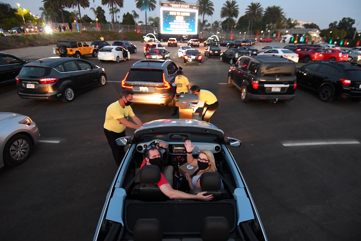 バーカー・ハンガー(格納庫)の横の広大な敷地に巨大スクリーンが設置され、ドライブイン・シアターとなった会場に出席者は全員、自分の車で乗り入れ、車中からシリーズの第1話と第2話を鑑賞しました。
