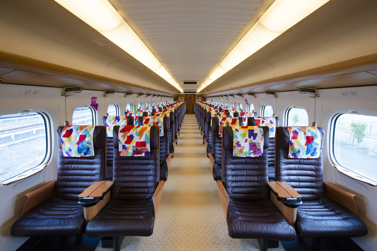 九州各県の形のモチーフとピクサーの仲間たちがデザインされたカラフルな新幹線が現在運行中です。
