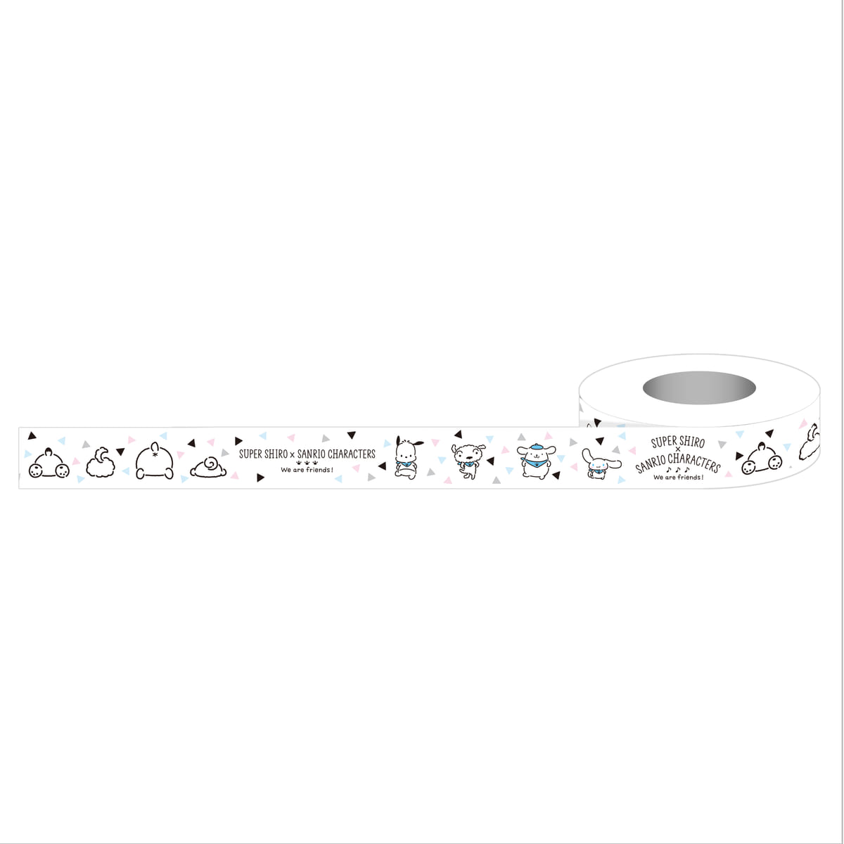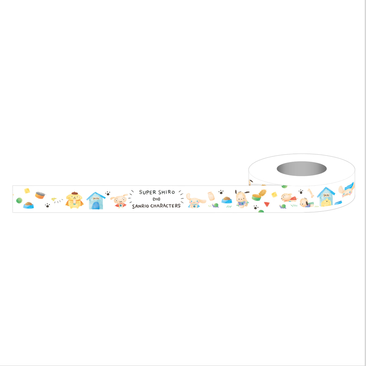 色鉛筆タッチの「スーパーシロ」と「シナモロール」、「ポムポムプリン」、「ポチャッコ」が、マスキングテープになりました。