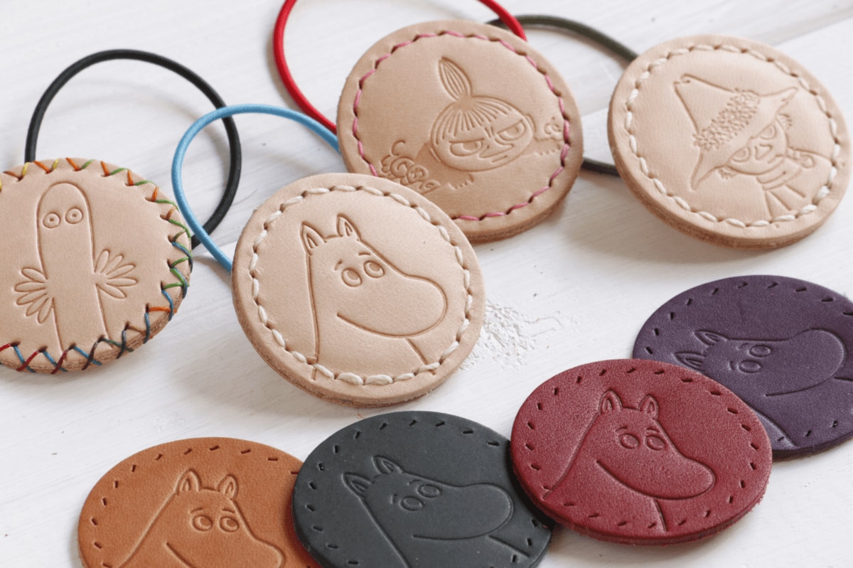 お好きなムーミンキャラクター、レザーと糸を選んで、手縫いでヘアゴムづくりが楽しめます。