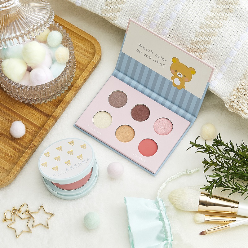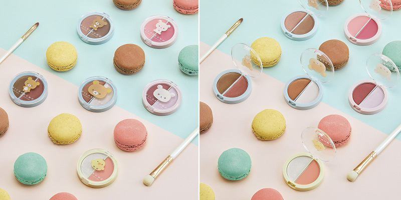 「リラックマ」の顔の形をしたコンパクトや、マカロンのようなチークなど、キュートなコスメグッズが多数そろっています☆