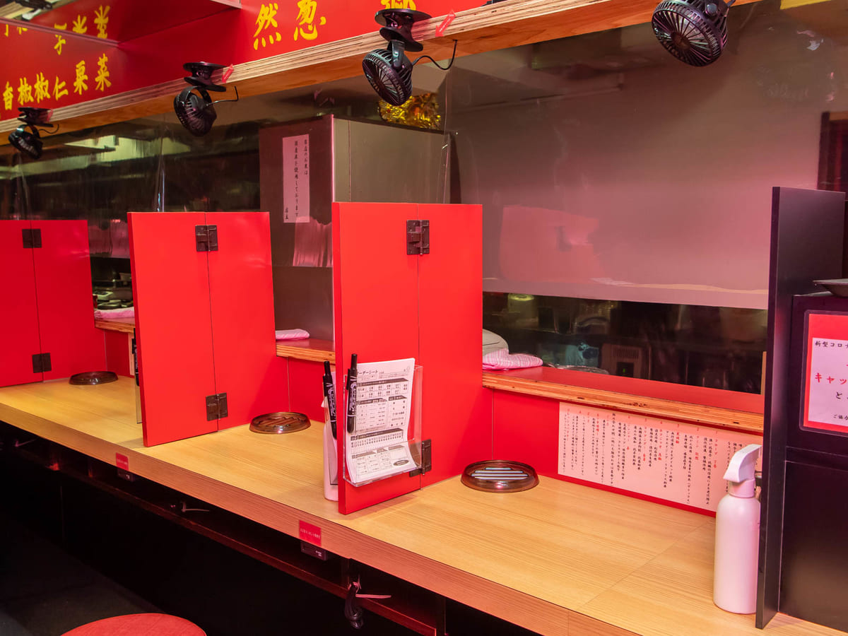 カウンター席は一席ずつ仕切りがあり、周りを気にせず、安心して食事を楽しめます。