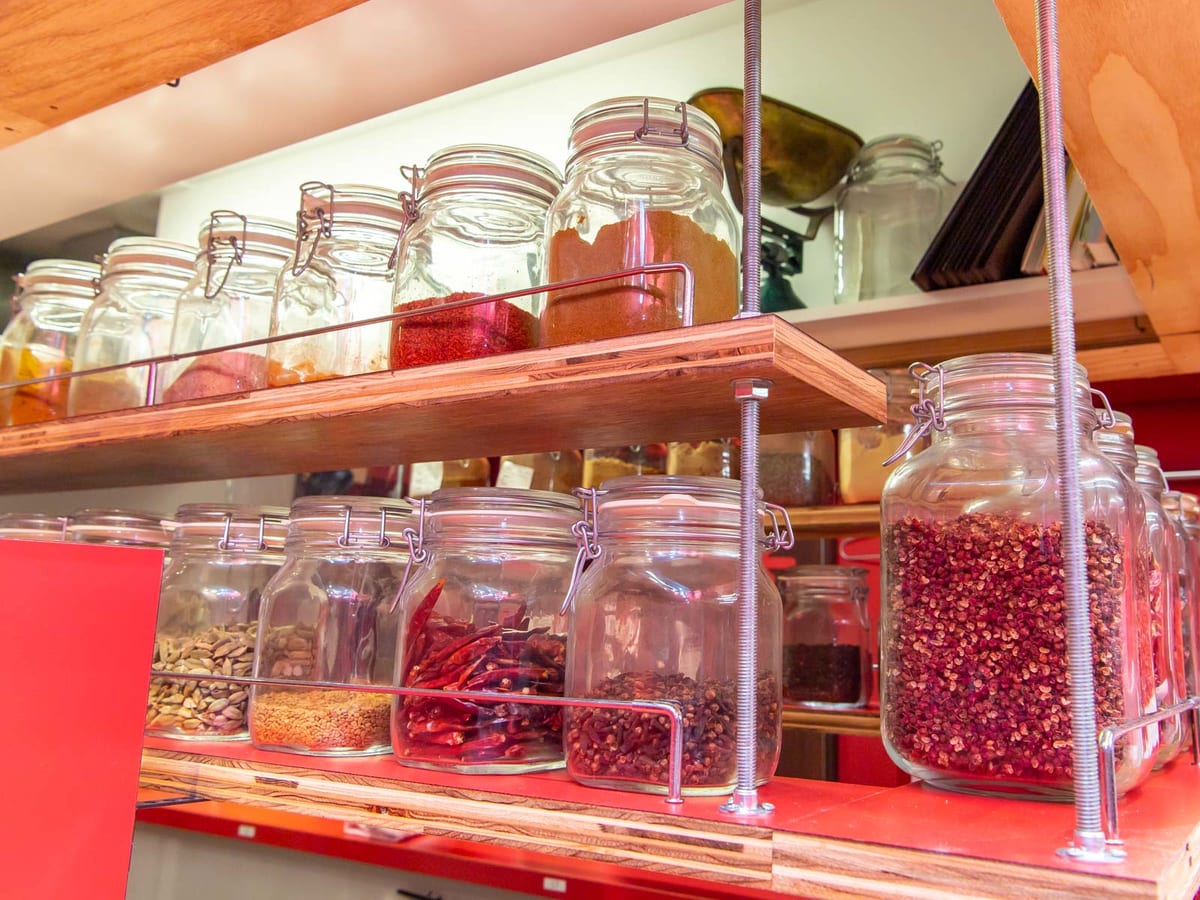 店舗に入ってまず視界に飛び込んでくるのが、スパイスの入ったたくさんの瓶!
