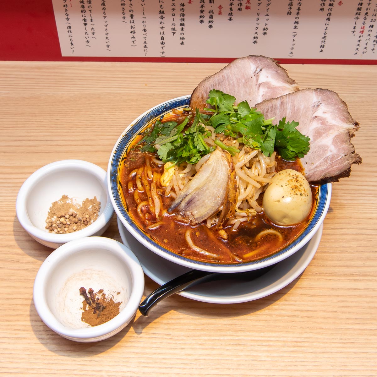 健康や美容に効果的なスパイスを、視覚、嗅覚、味覚、触覚、聴覚の五感すべてを使って体験できるラーメン店です。