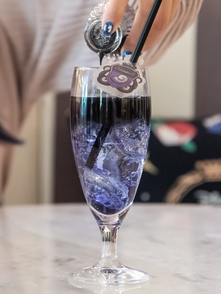 ドリンクが黒く染まる、嬉しい仕掛けが楽しめるドリンクです。