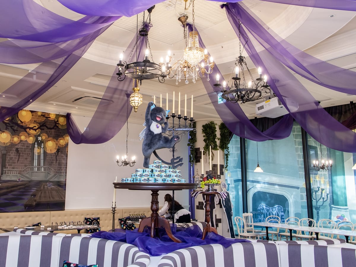 『ディズニー ツイステッドワンダーランド』の世界観が広がる店内は、ゲーム内で登場する大食堂をイメージしたフォトジェニックな空間となっています。