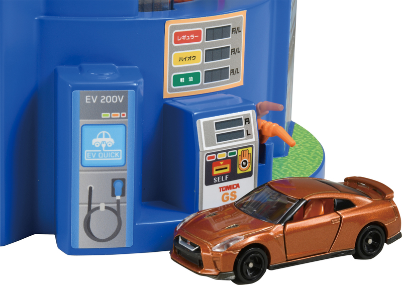 ノズルが動く給油スタンドなど、ごっこ遊びにぴったりの装備も。