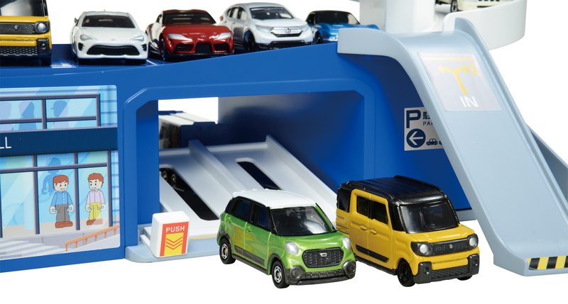 パーキングスペースは「トミカ」を最大30台駐車することができ、自由に並べて遊んだり、お片付けにも利用できるスグレモノ☆