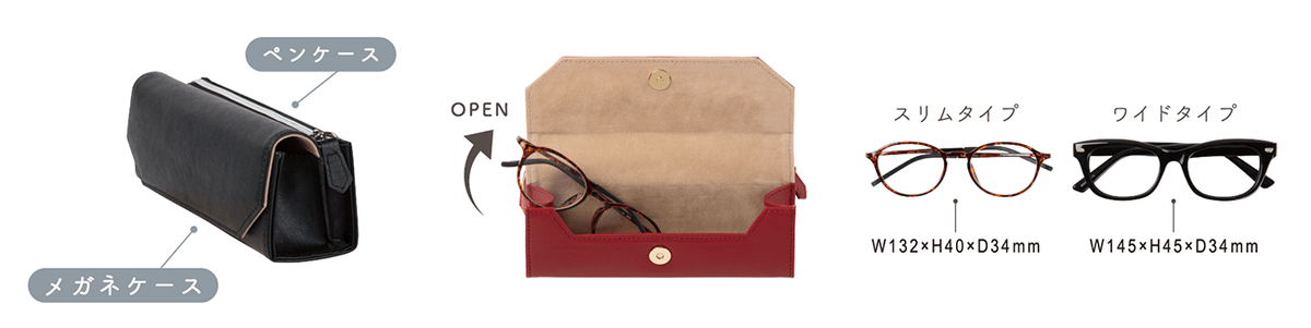 メガネケースとペンケースが一緒になったことで、カバンの中で散らばったり嵩張らないのがポイント。