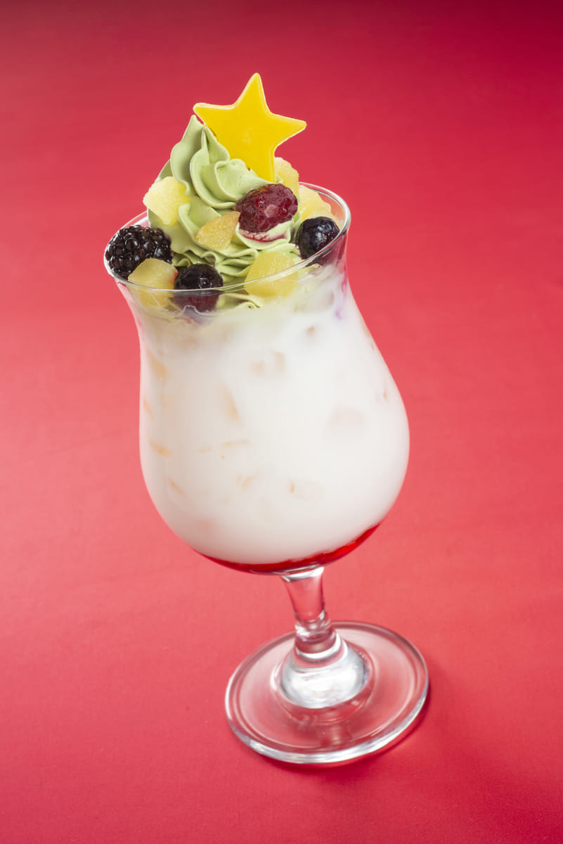 クリスマスカラーの赤、緑、白が映えるスペシャルドリンクも提供。