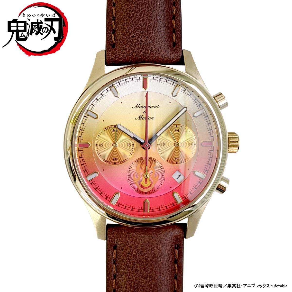 ホワイトシルバーの盤面には、「煉獄杏寿郎」の羽織をイメージし、赤と黄色のグラデーションが施されています。