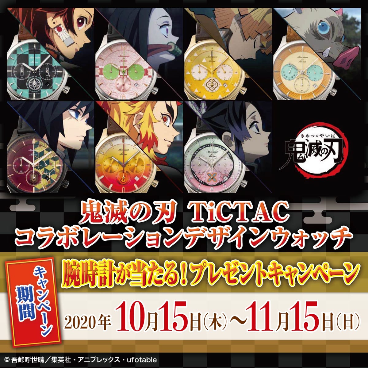 賞品:「鬼滅の刃 TiCTAC コラボレーションデザインウォッチ」7種/抽選で各1名