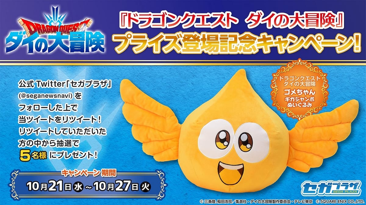 『ドラゴンクエスト ダイの大冒険』のプライズ登場を記念したTwitterキャンペーンを開催。