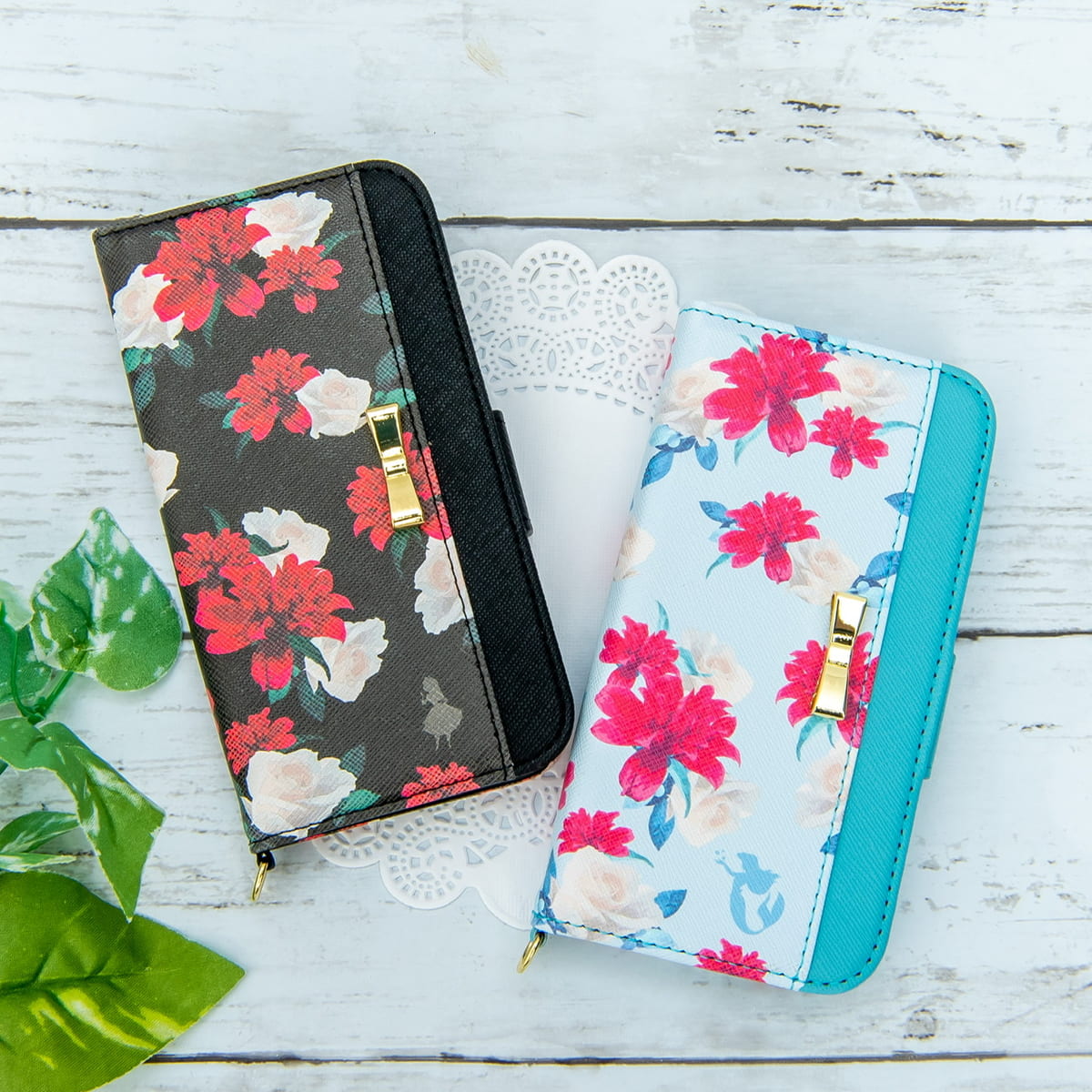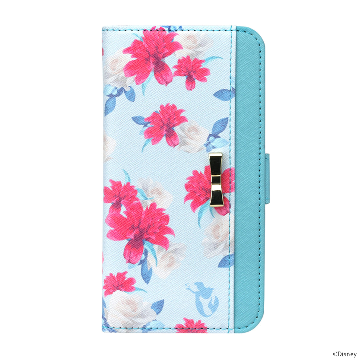 ゴールドリボンのパーツをあしらったディズニーキャラクターデザインのiPhone 12 mini、iPhone 12 /12 Pro用フリップカバーです。