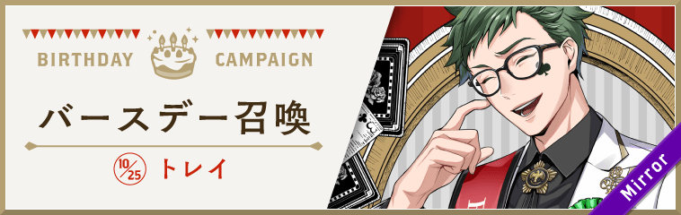 10月25日にお誕生日を迎える、ハーツラビュル寮の副寮長「トレイ・クローバー」のバースデーを記念し「トレイ バースデー召喚」と「トレイ バースデーキャンペーン」が開催されます☆
