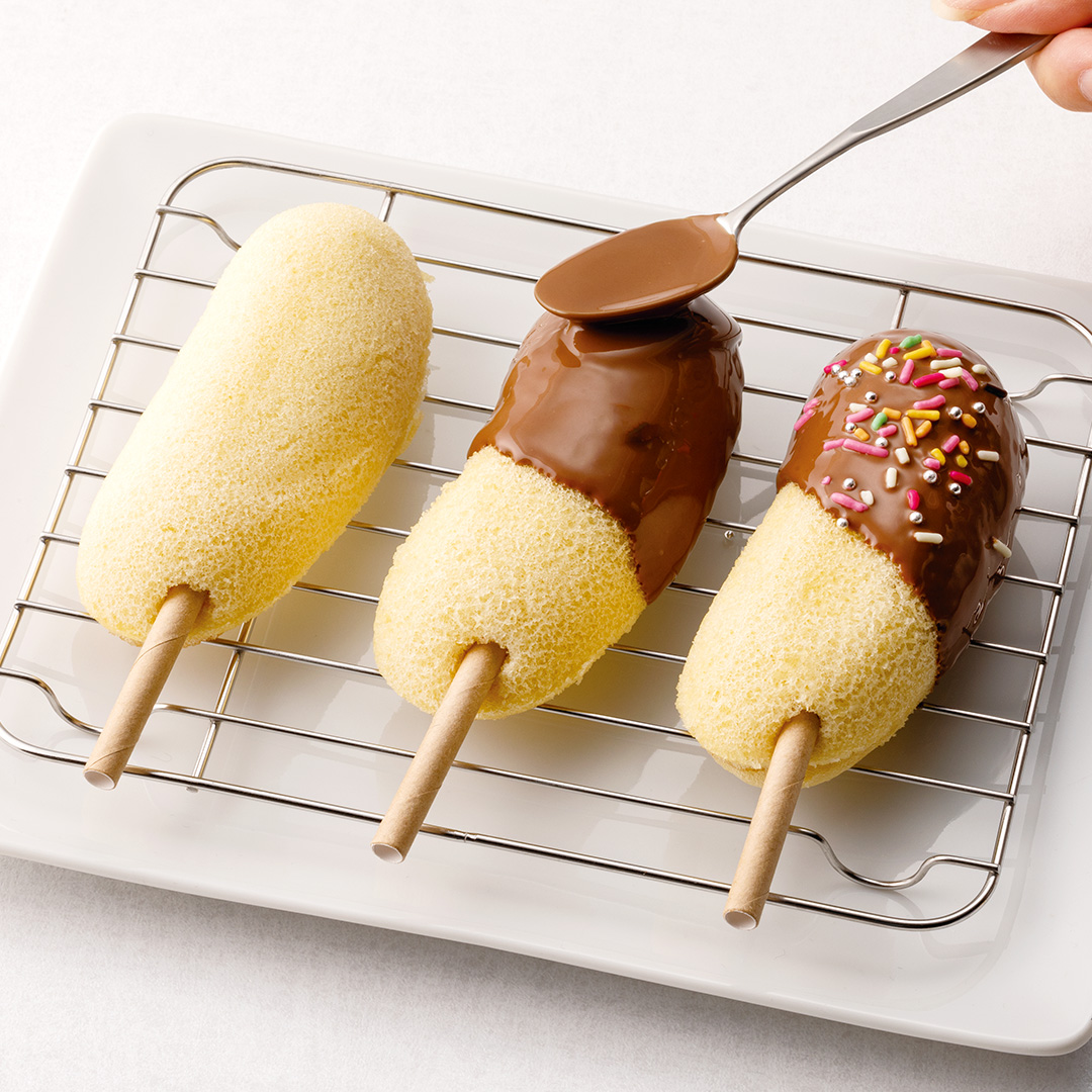 棒に刺してチョコをコーティング、カラーチョコスプレーをパラパラトッピングするだけの簡単デコレーション☆